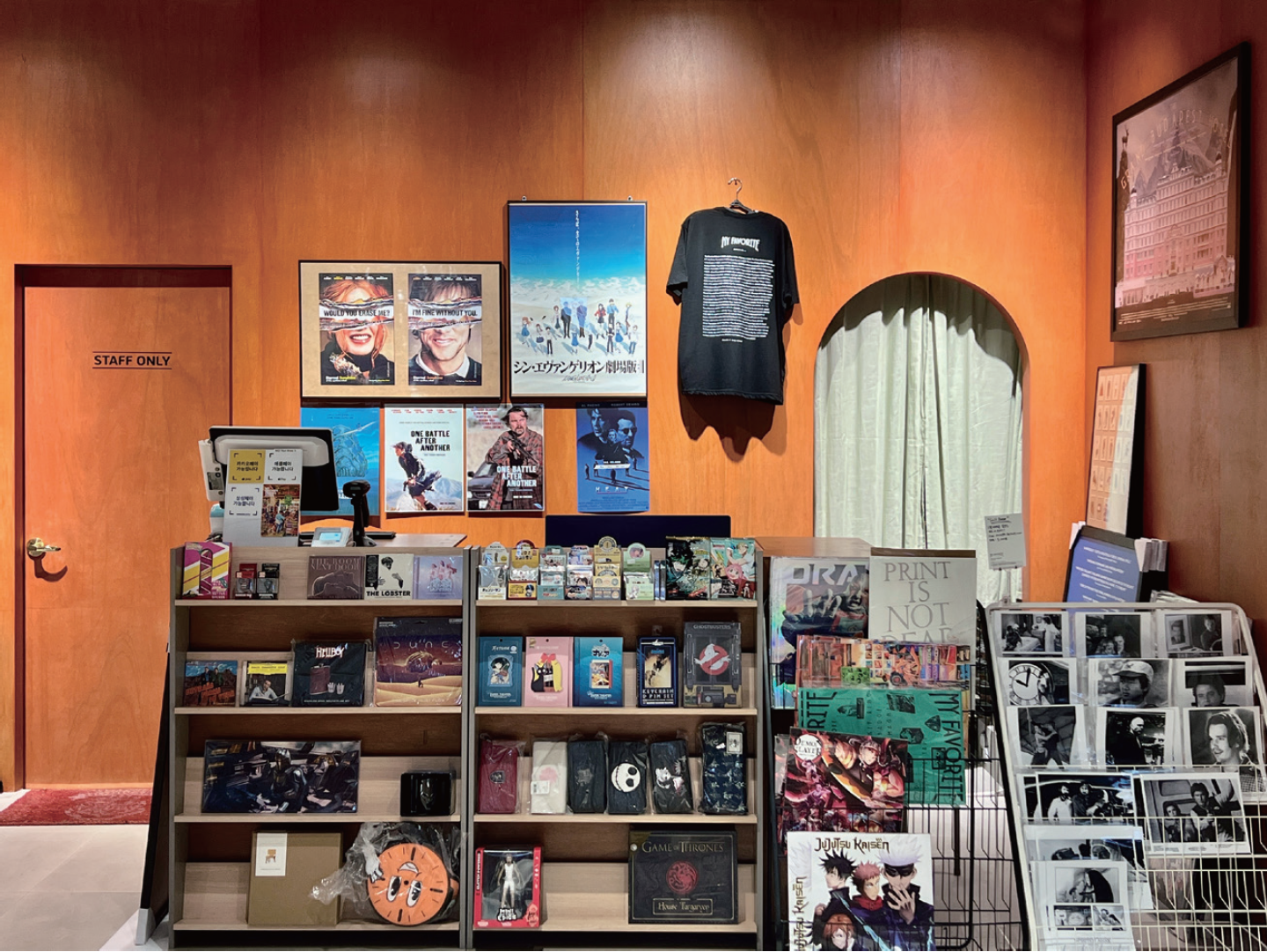 운영자의 취향을 가득 담아 좋아하는 영화와 관련된 다양한 아이템들을 소개/판매하는 시네마스토어. 다양한 영화 포스터, 사운드트랙 바이닐, 각본집 등 영화도서와 다양한 영화/애니 굿즈들을 한 공간에서 즐길 수 있으며, 국내에서 구하기 힘든 유니크한 아이템들과 정식 라이센스 및 수입제품만을 취급한다. 서울시 마포구 양화로 11길 18 B1, 화-금 15:00-19:00 토-일 13:00-19:00 월 휴무 | @store.myfavorite
